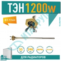 ТЭН для алюминиевого радиатора (батареи отопления) 1,2 кВт, правая резьба, нерж, D33, G1", L390мм, 220V, Р12П