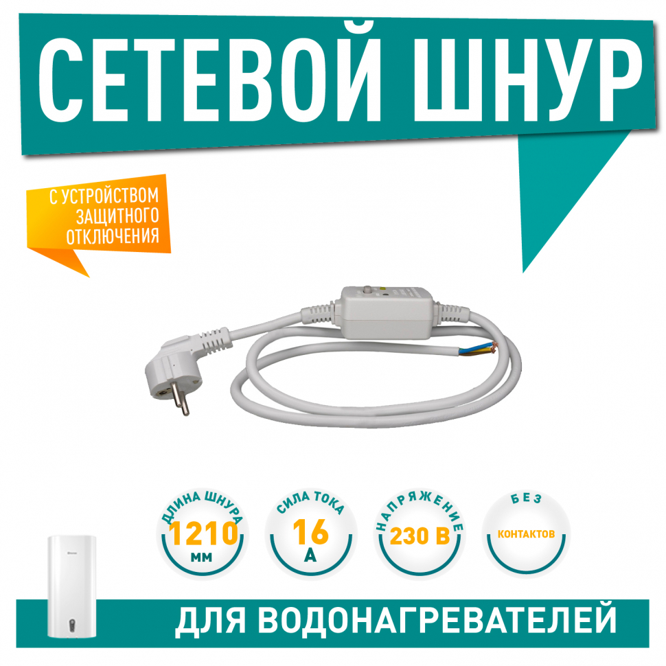 Универсальный сетевой шнур с устройством защитного отключения (УЗО) нужен для безопасного подключения водонагревателей к электросети. Защищает от утечки тока, поэтому необходим для безопасного использования в быту.